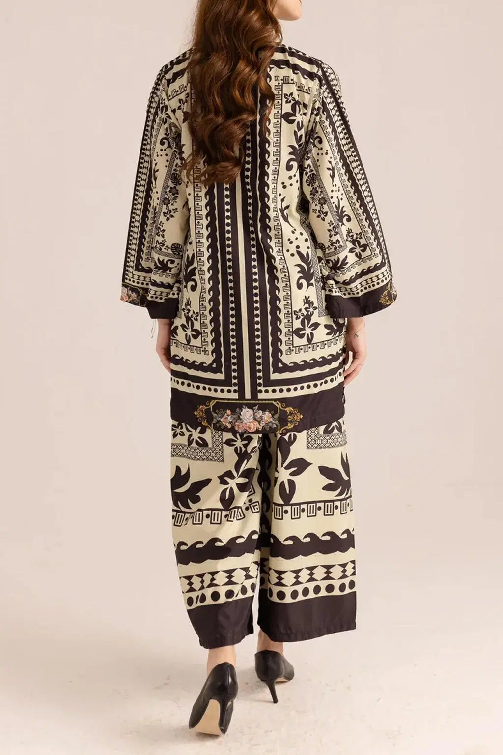 Stylish Printed V-Neck Shirt and Plain Trouser Set - 2 Pcs for Women